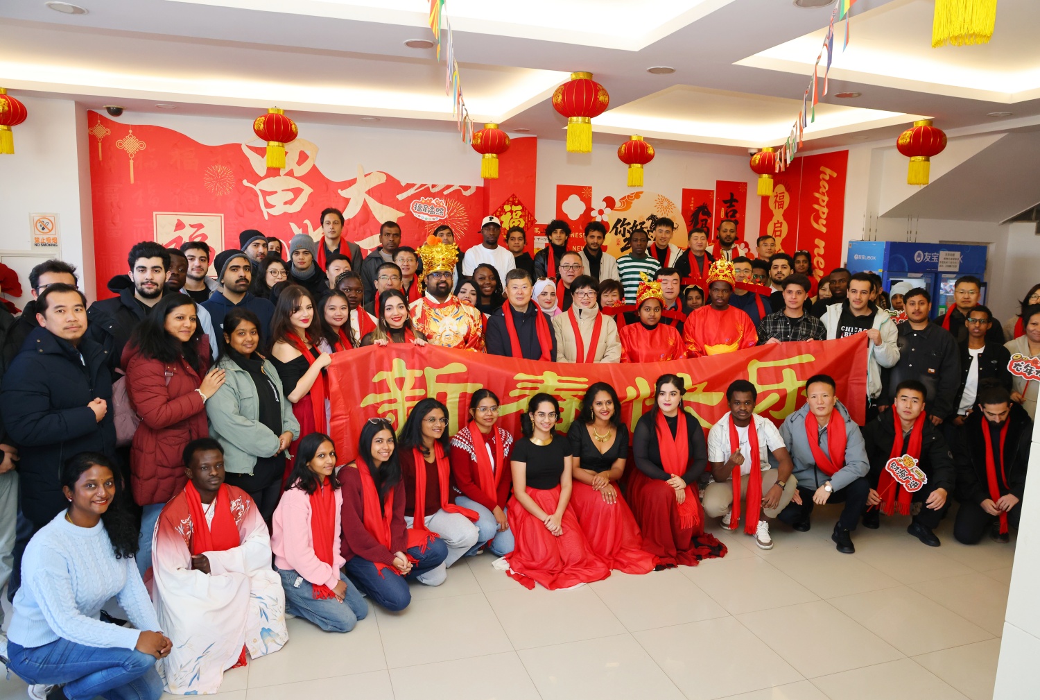 春风送暖入校园,瑞气盈门迎新春。2月16日上午,除夕当日,我校在留学生公寓19号楼举办“新春同乐,四海一家”留学生春节文化体验活动。学校党委书记李海洋,副校长邵淑娟,党委常委、统战部部长张琳,党政办公室、党委保卫工作部、后勤管理处、研究生院等相关部门领导以及国际教育学院班子成员,同来自伊朗、斯里兰卡、巴基斯坦、也门等国家的五十余名留学生共同欢度新春佳节。洋财纳喜,拱手送福闹新春红绸加身,元宝在手,来...