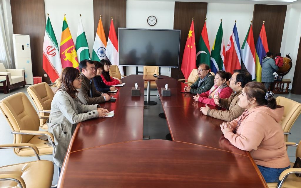潘艳代表学院对马杜佳父母家人的远道而来表示欢迎。李晓东简要介绍了学校情况及我校留学生的培养特色。郭艳秋介绍了马杜佳同学在校学习生活情况。
