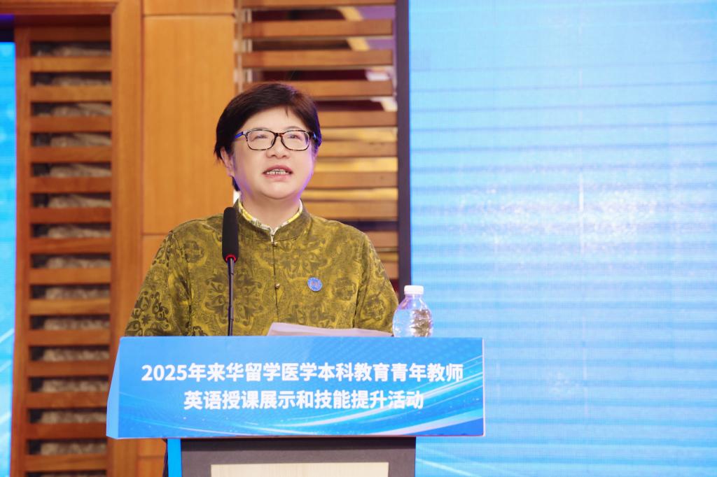 副校长杨晓丽出席开幕式并致辞。她向出席活动的专家学者表示欢迎,并简要介绍了我校来华留学医学教育工作。她指出,本次活动不仅为医学青年教师提供了展示与交流的平台,也为我国来华留学医学教育的质量提升与教学创新注入了强劲动力,希望各位青年教师在切磋技艺中实现超越、在交流互鉴中启迪智慧、在友谊的交流中收获成长。中国教育国际交流协会副秘书长安延,中国教育国际交流协会国际医学教育分会理事长、山东大学副校长易凡视频致辞,勉励青年教师在交流中取长补短、在实践中锤炼本领,努力提升跨文化教学能力,成长为兼具专业素养和国际视野的优秀医学教育者。