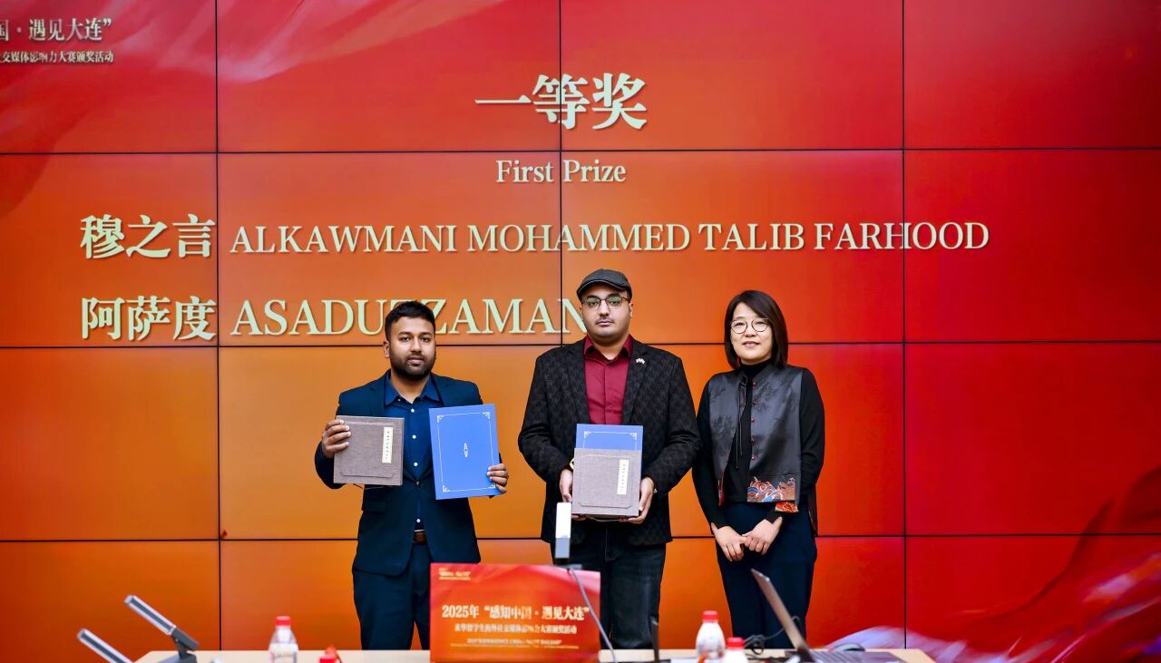 留学生是跨文化交流的亲历者与传播者,他们的作品往往更贴近国际受众的认知习惯,是讲好中国故事的重要力量。借此次赛事契机,大连国际传播中心与各高校深度联动,并择优聘任一批优秀国际学生担任 “大连国际传播国际学生推荐官”,推动大连国际传播工作向更广维度、更深层次拓展升级。我校伊拉克籍留学生穆之言(ALKAWMANI MOHAMMED TALIB FARHOOD)成功受聘,他表示,未来将持续坚守 “外国青年视角 + 中国真实故事” 的传播初心,以真挚笔触、生动镜头破除文化壁垒,让世界真切看见大连的开放包容、感受中国的发展脉动与时代温度。