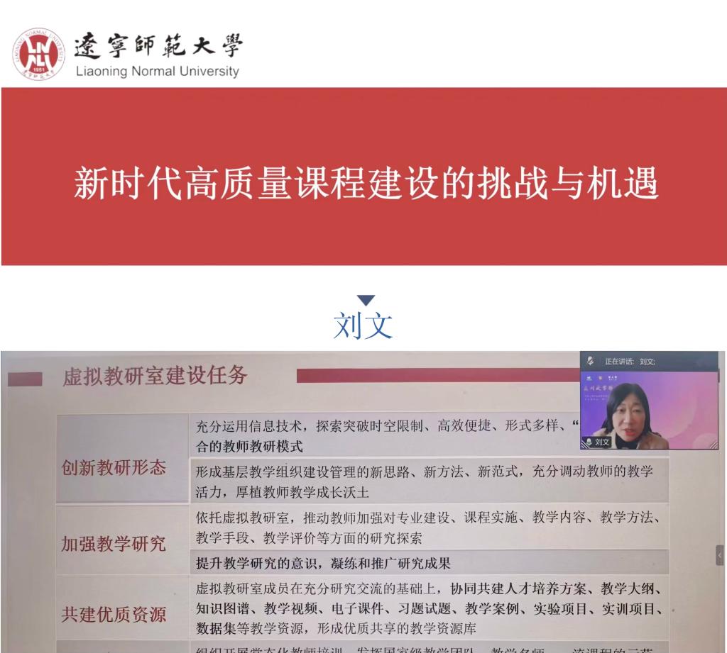 为深入贯彻落实国家教育数字化战略部署,探索教师协同教研新模式,提升育人新效能,4月22日,国际教育学院联合教师教学发展中心线上举办虚拟教研室建设师资培训会。学校各虚拟教研室建设项目负责人、研究生导师及一线教师共50余人参会。培训特邀辽宁师范大学刘文教授、超星集团项目负责人孙斌作专题分享与实操指导。