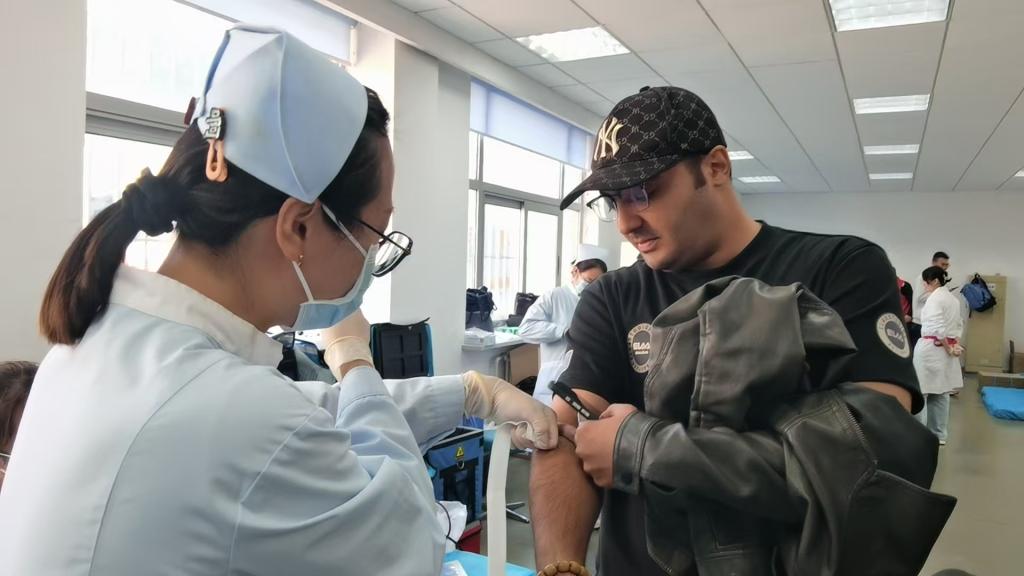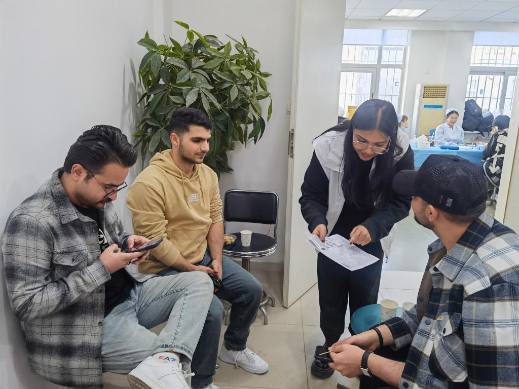 活动期间,校医院内人头攒动,除了中国学生,来自巴基斯坦、伊朗、斯里兰卡、伊拉克等多个国家的留学生身影格外引人注目。他们在工作人员的引导下,有序完成信息登记、健康检查、血液检测等流程。尽管部分留学生对献血流程不太熟悉,且存在语言沟通的小障碍,但留学生志愿者们耐心地用双语讲解注意事项,帮助他们顺利完成每一个环节。